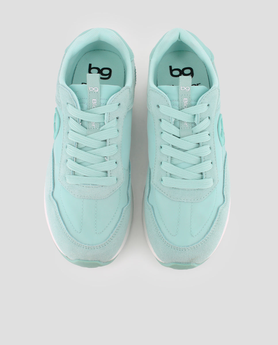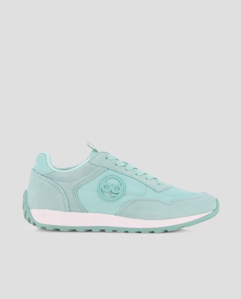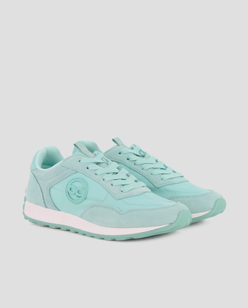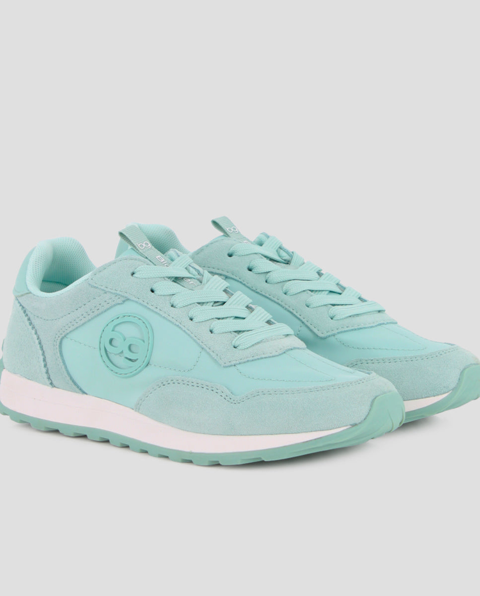 Zapatillas casuales estilo jogger en piel y material sintético color verde. Cuentan con 2 cm de altura, forro interior en textil y plantilla acolchada en textil, ofreciendo comodidad y soporte en cada paso para el uso diario.